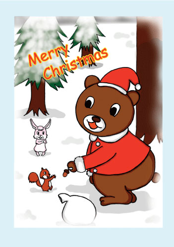 くまのサンタさんが、森の子ども達にプレゼントを配っているところです。